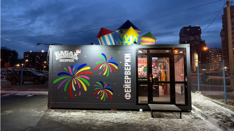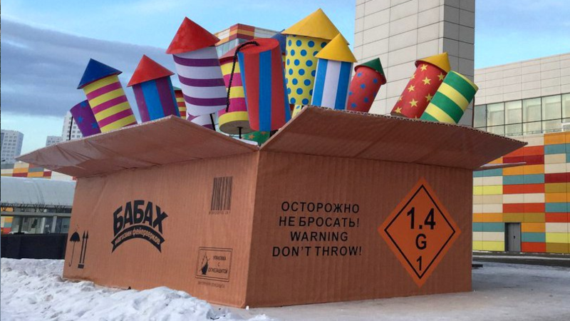 Выбирать фейерверкОднажды мы решили, что наши розничные магазины должны выглядеть необычно. Так был придуман и в 2016 году реализован дизайн «Коробка с ракетами». Данный дизайн запатентован, авторское право охраняется.