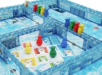 Состав коробки: - 4 фигурки пингвинов; - 16 деревянных фишек рыб; - 45 карт добычи; - 8 карт пингвинов; - 5 коробок-комнат; - правила.