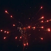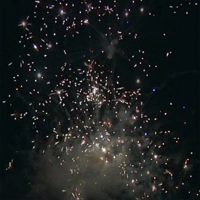 Серебряные вихри переходят в облако из золотых трещащих цветов с вкраплениями разноцветных звезд.