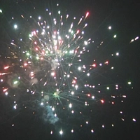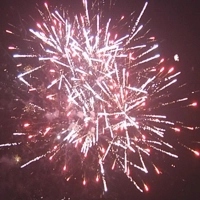Красные хризантемы с мерцанием; зеленые цветы с треском; золотая ива с синими жемчужинами; разноцветные мерцающие пионы. Финал - трещащие хризантемы