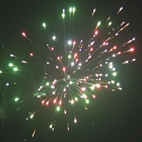 Разноцветные пионы; парча с зеленым мерцанием; разноцветный треск. Финал - золотая парча с треском.