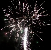 Разноцветные мерцающие пионы; серебряные хризантемы в золотом треске; золотая парча с зелеными звездами; золотая парча с треском; зеленая хризантема с треском; золотой треск с красными звездами; трещащие шлейфы переходят в золотую парчу с треском; красные или зеленые хризантемы с золотым треском; трещащие облака; красные шлейфы; серебряное мерцание с золотым треском; золотая парча с зелеными жемчужинами; пурпурные хризантемы с треском.Финал - огромное золотое трещащее облако.