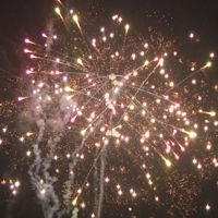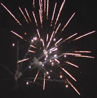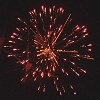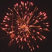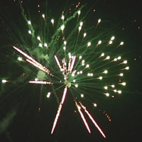 Букет из свистящих змеек переходит в разноцветные букеты; серебряные пионы с красными жемчужинами; золотая парча с треском; трещащие пальмы с красным блеском; золотые ивы. Финал - золотые облака с разноцветными жемчужинами.