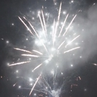 Парчовая корона с белым и золотым мерцанием| трещащие сферы с голубыми и фиолетовыми жемчужинами. Финал — вращающиеся шлейфы разрываются сферами из трещащих облаков с разноцветными огнями.