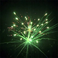 Красные переливающиеся ивы сменяются синими сферами с разбегающимися изнутри рыбками, затем зеленые блестящие ивы. Зеленые кокосы в окружении красных стробиков. Финал - букет из трещащих звезд, переходящий в золотые шуршащие ивы.