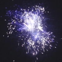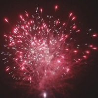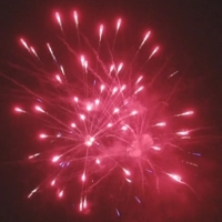 Красные мерцающие пионы, пурпурные хризантемы в золотом треске, разбегающиеся рыбки, красно-синие пионы, трещащие сферы с зеленым пестиком, разноцветные мерцающие пионы. Финал — красная хризантема в золотом треске.