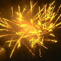 Большая золотая сфера с красным мерцанием, золотой пушистый хвост в золотую сферу с треском, серебряная пальма с золотой трещащей хризантемой, трещащая ива, золотая волна с треском, красный георгин, парча, золотая сфера с красным мерцанием, парчовый хвост в золотую сферу с треском, серебряная пальма с треском, парчовый хвост и золотое мерцание, парчовый хвост и красные звезды, серебряная сверкающая корона, с красными звездами, желтая пальма с зеленым мерцанием, золотой хвост в золотую сферу с треском.