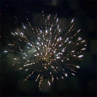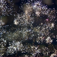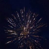 Следующие залпы приносят новые эффекты. Золотые и серебряные хризантемы разбрасываются по небу, словно цветочный дождь, который окутывает все вокруг золотистым и серебряным блеском.