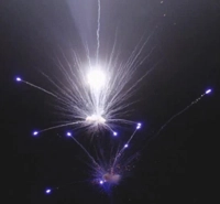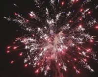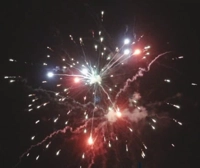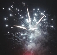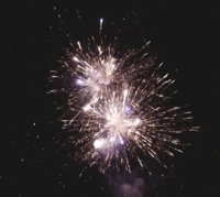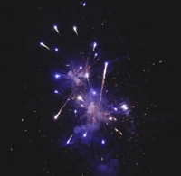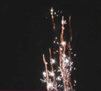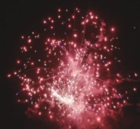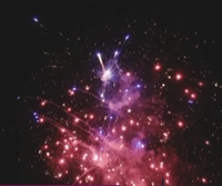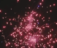 Нежно-красное мерцание; серебряные сферы с пестиком; разноцветные пионы. Финал - огромное красно-синее трещащее облако.