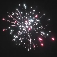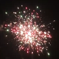 -Красные, зеленые, пурпурные, голубые и разноцветные пионы с белым мерцанием и облаком трещащих разрывов.