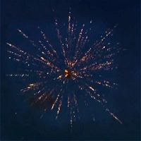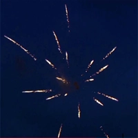 Как настоящий звездопад предстает перед нами этот необычный салют. Объемные золотые цветы рассыпают на небо чашу мерцающих звезд. Необычным дополнением является букетик из синих мерцающих незабудок с разлетающимися в разные стороны белыми лепестками.