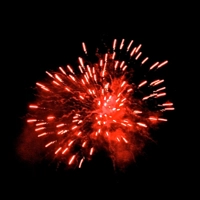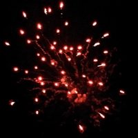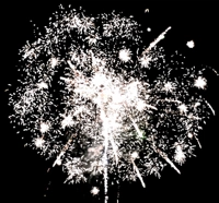 Треск, серебряные рыбки с синими звездами, красные, зеленые и синие звезды с белыми стробами, красная мерцающая ива с белыми стробами, серебряная пальма, парчовая корона, трещащая ива, хризантема с красными звездами, синий пион и белые стробы, красная астра и трещащая ива.