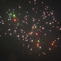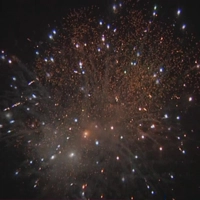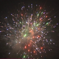 4 эффекта: разноцветные переливающиеся звезды, синие хризантемы, золотые трещащие звезды. Финал- огромная сфера из разноцветных стробирующих и трещащих огней.