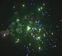 7 эффектов: золотые ивы с синими жемчужинами, оранжевое сияние, множество растрескивающихся звезд, огромные серебряные хризантемы, голубые переливающиеся жемчужины, зеленые шуршащие пальмы. Финал-трещащие шлейфы переходят в букет из золотых цветов.