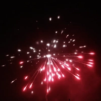 Разноцветные мерцающие пионы; золотые ивы с синими или зелеными жемчужинами; шуршащие пауки в разноцветных звездах; красные и зелёные хризантемы с треском. Финал -мерцающее серебряное облако.