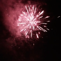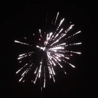 Серебряные хризантемы в красном мерцании; золотая парча с красными или зелеными жемчужинами; серебряные хризантемы; разноцветные хризантемы в треске. Финал - букет из трещащих цветов.
