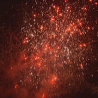 Разноцветные хризантемы с мерцанием и треском. Финал: облако из золотых растрескивающихся звезд.