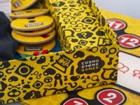 Состав коробки: - игровое поле; - 100 карт с вопросами; - 60 деревянных кубиков; - 10 устройств для голосования; - 10 фишек игроков; - мешок для кубиков; - 10 ширм.