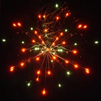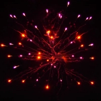 Разноцветные георгины в серебряном мерцании, золотая парча в трещащем облаке. Финал — цветная хризантема в золотом треске.