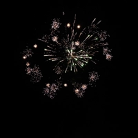 1-Серебряный пион с красными звездами и белым мерцанием; 2-Серебряный георгин с зелеными звездами и золотым треском; 3-Золотые георгины в золотом треске; 4-Золотые ивы в зеленом мерцании; 5-Золотые ивы с синими звездами; 6-Золотые ивы в белом мерцании; 7-Золотые ивы с красными звездами; 8-Серебряное облако с треском и мерцанием; 9-Серебряная хризантема в белом мерцании; 10-Золотые ивы в белом мерцании; 11-Золотые хризантемы с красно-зелеными звездами; 12-Облако красно-зеленого мерцания; 13-Золотые пионы с пурпурно-зелеными звездами в белом мерцании;
