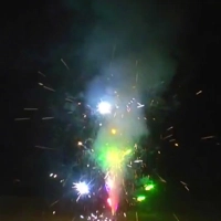 Ассорти из разноцветных искр с треском. Желтые цветки золотого фонтана с хризантемами. Сине-золотые мерцания. Красно-зеленые большие хризантемы. Большие трещащие хризантемы.