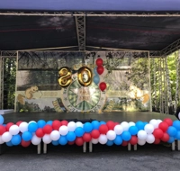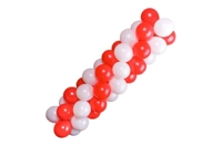 Эта гирлянда изготавливается из одинаковых четверок шаров, надутых на единый размер (одинаковые кластеры). Круглые гирлянды из четверок являются самым распространенным видом гирлянд из воздушных шаров.