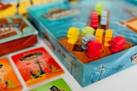 Но придётся заняться стратегией, потому что в этой игре вы не отвечаете картой на карту (чтобы, знаете, отомстить за толчок в воду). Все игроки выкладывают три карты, которые они хотят сыграть в этот ход, рубашкой вверх. Первый игрок (его можно выбрать любым способом, например, кто громче всех рыгнёт) открывает свою первую карту и выполняет действие. Потом второй игрок открывает первую карту. И таким же образом потом открываются все три карты у всех игроков.Настоящая конкуренция с запахом пороха
