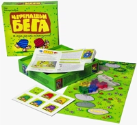 "Черепашьи бега" - стратегическая игра-гонка для детей и их родителей. Отважные разноцветные черепашки отправляются в путь за капустой, не гнушаясь прибегать к разнообразным уловкам и подлянкам, лишь бы заполучить этот вожделенный овощ. Но всё не так просто - игроки до самого конца не знают, какого цвета черепашка противника, т. к. каждый игрок может управлять совершенно любыми черепахами. Попробуй тут разберись!