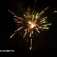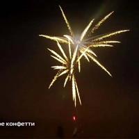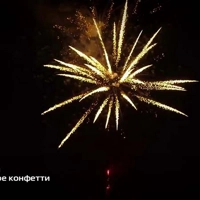Ваш праздник украсят 100 залпов калибром 1.2"(30мм), радуя вас эффектами, среди которых: красный хвост, золотой кокос; зеленый хвост, зеленый кокос, красное мерцание; голубой хвост, голубой пион, красная мерцающая ива; красный хвост, цветной пион, серебряная трещащая ива; трещащий хвост, серебрянная трещащая хризантема. Незабываемые 74 секунд впечатляющего пиротехнического шоу!