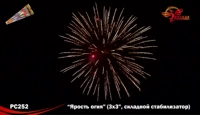 Ракеты с различными эффектами: сфера из золотых форсов с красными пульсирующими огнями в центре.<br />