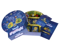 Состав коробки: - 55 клеток; - 4 клетки кораблей; - 12 фигурок пиратов; - 16 монет; - 9 карт пиратских способностей; - 4 бутылки с посланиями; - фигурка миссионера; - наклейки для обозначения пиратских способностей; - шестигранный кубик; - памятка; - правила игры.