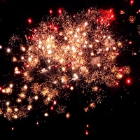 5. Облако из золотых растрескивающихся цветов и красных звезд;