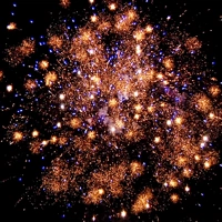 6. Облако из золотых растрескивающихся цветов и синих звезд;