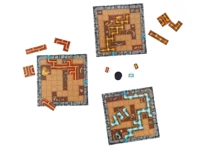 Состав коробки: - счётчик очков; - 6 маркеров трубопроводчиков; - песочные часы на 30 секунд; - 41 двустороннее поле; - 42 фрагмента труб; - правила игры.