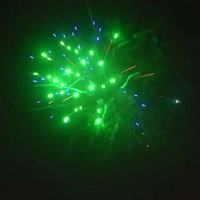 Но это еще не все! В батарее также присутствует золотая пальма с зелено-синими звездами. Этот эффект создает потрясающую комбинацию золотистых звезд, окруженных зеленым и синим мерцающим огнем. Это выглядит очень эффектно и уникально.